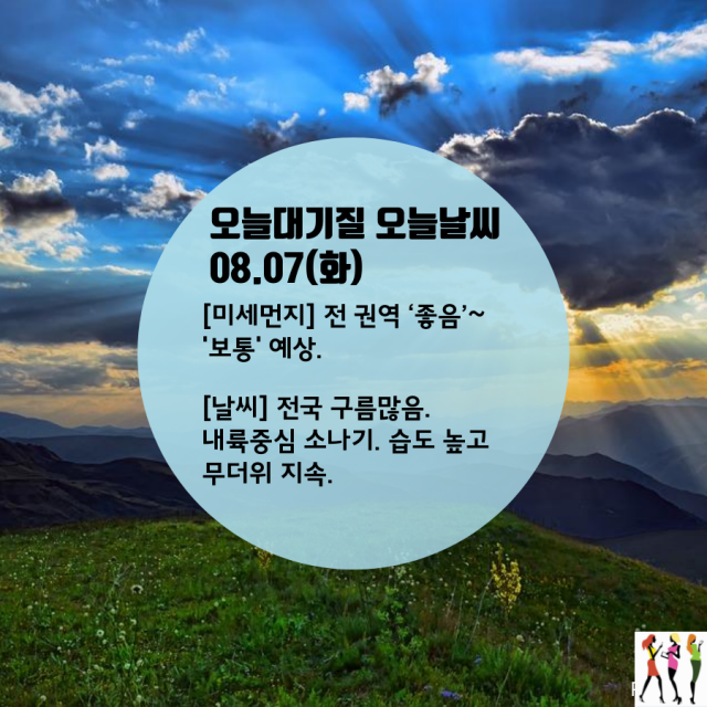 [#미세먼지] 전 권역 ‘좋음’~’보통’ 예상 [#날씨] 전국 구름많음. 내륙중심 소나기. 습도 높고 무더위 지속. 2018.08.07(화) #뉴미디어포털 #건강핫팁