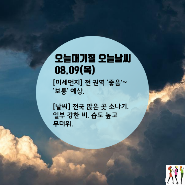 [#미세먼지] 전 권역 ‘좋음’~’보통’ 예상 [#날씨] 전국 많은 곳 소나기. 일부 강한 비. 습도 높고 무더위. 2018.08.09(목) #뉴미디어포털 #건강핫팁