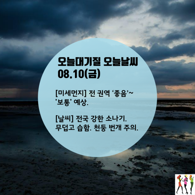2018.08.10(금) [#미세먼지] 전 권역 ‘좋음’~’보통’ 예상 [#날씨] 전국 강한 소나기. 무덥고 습함. 천둥 번개 주의. #뉴미디어포털 #건강핫팁