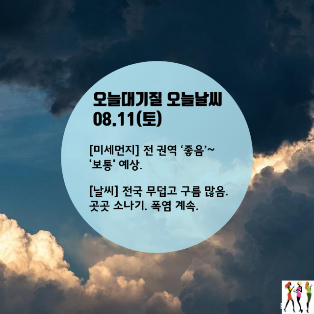 2018.08.11(토) [#미세먼지] 전 권역 ‘좋음’~’보통’ 예상 [#날씨] 전국 무덥고 구름많음. 곳곳 소나기. 폭염 계속. #뉴미디어포털 #건강핫팁