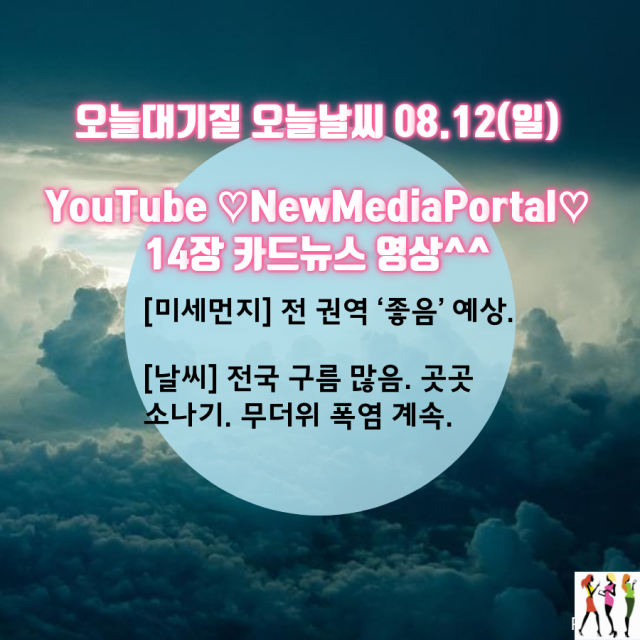 2018.08.12(일) [#미세먼지] 전 권역 ‘좋음’ 예상 [#날씨] 전국 구름 많음. 곳곳 소나기. 무더위 폭염 계속. #뉴미디어포털 #건강핫팁