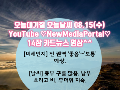 2018.08.15(수) [#미세먼지] 전 권역 ‘좋음’~’보통’ 예상 [#날씨] 중부 구름 많음. 남부 흐리고 비....