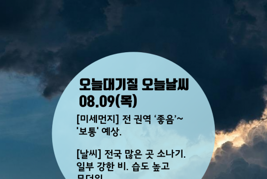 [#미세먼지] 전 권역 ‘좋음’~’보통’ 예상 [#날씨] 전국 많은 곳 소나기. 일부 강한 비. 습도 높고 무더위. 2018.08.09(목) #뉴미디어포털 #건강핫팁