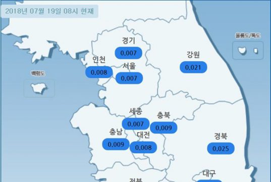 오존(0₃) 2018.07.19(목) 08시 시도별 대기질정보 #뉴미디어포털